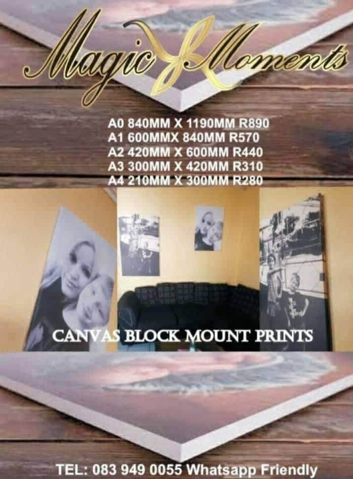 We offer the following services: safety signs, block mounts, all printing, selfie frames, chromadek and foam boards, labels, stickers and sublimation.